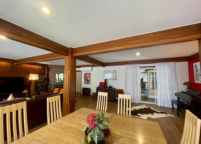 Cette villa de Brisbane est à environ 10 minutes en voiture du Centre commercial Indooroopilly et à environ 15 minutes en voiture de Queensland Centre For Advanced Technologies. Les sites culturels à proximité comprennent le planétarium Sir Thomas de Brisbane, qui est situé dans une zone de 7 km. Vous pourrez également visiter la réserve de Gap Creek, qui est à 20 minutes en voiture.